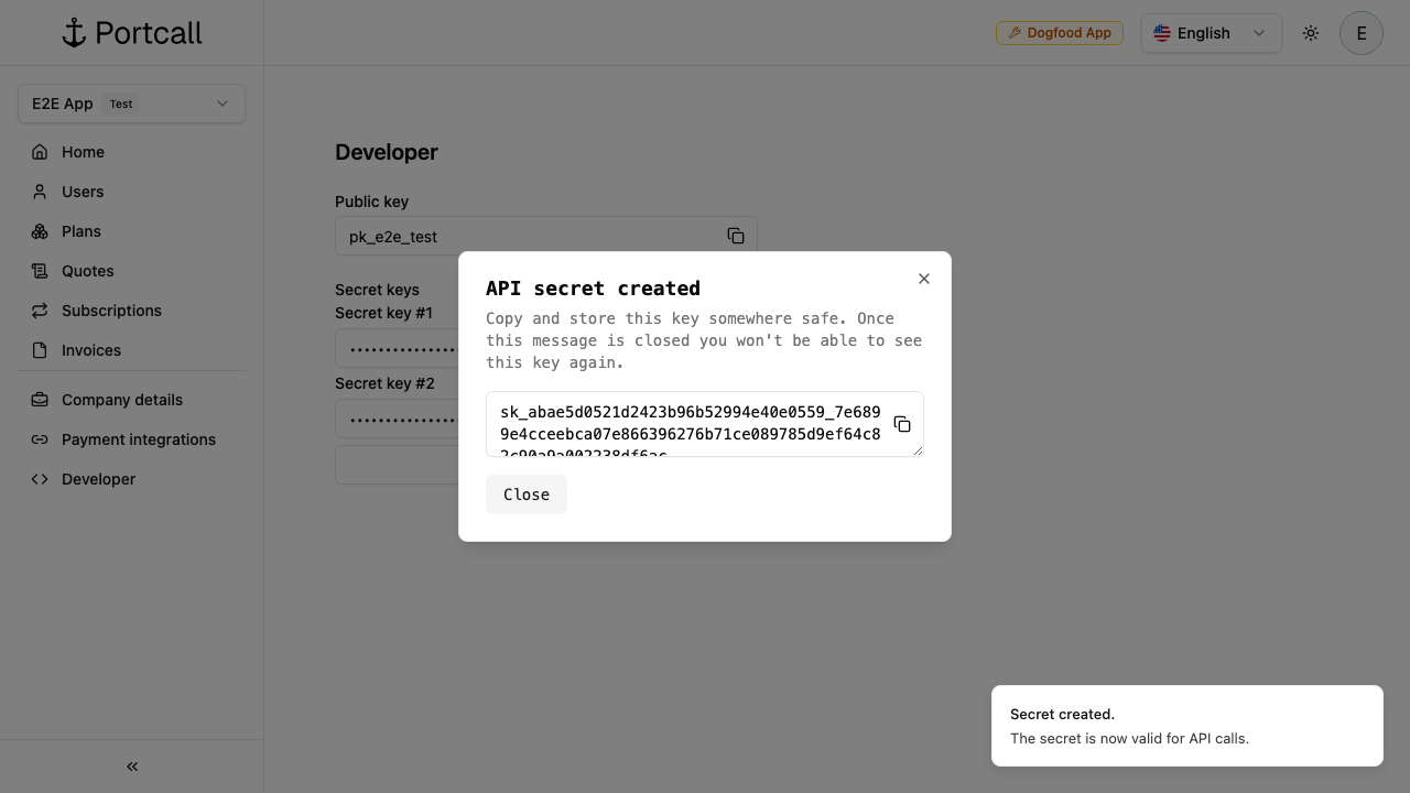 Go to Developer and create an API secret.