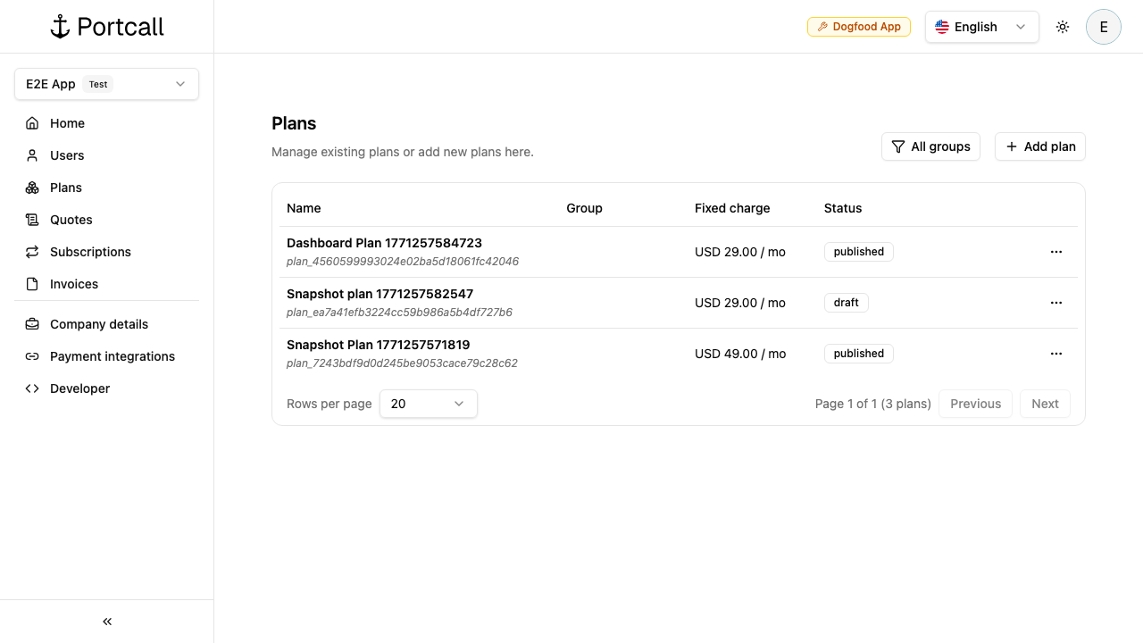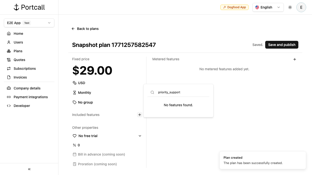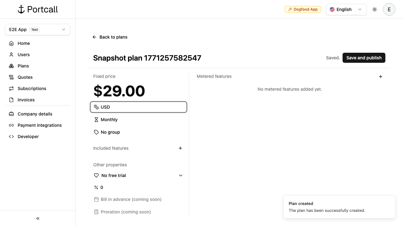Configure plan details (example name: Acme Pro, fixed price: $29/mo).
