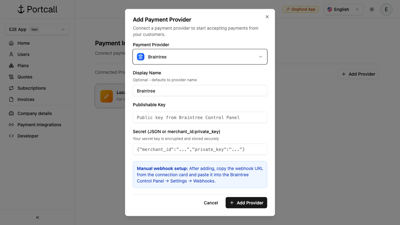 What you need to integrate payment provider directly using Portcall’s dashboard